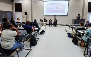 A panel composed of Dr. Derek Fish, Dr. Mamoeletsi Mosia and Prof. Eric Maluta opened the conference discussions, responding to various opportunities, challenges and solutions to science engagement. This set the scene for the rest of the deliberations by providing insight into the imperative, through government’s Science Engagement Strategy, to embed science into our communities.