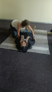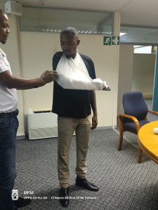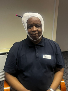 As expected, the practical demonstrations proved to be the highlight of the training. Colleagues quickly discovered that applying a triangular bandage neatly is far more challenging than it looks, and that immobilising a “patient” who insists on laughing is not part of the standard training manual. At one point, volunteers were wrapped, bandaged, and carefully positioned in ways that drew comparisons to modern art installations rather than textbook medical scenarios.